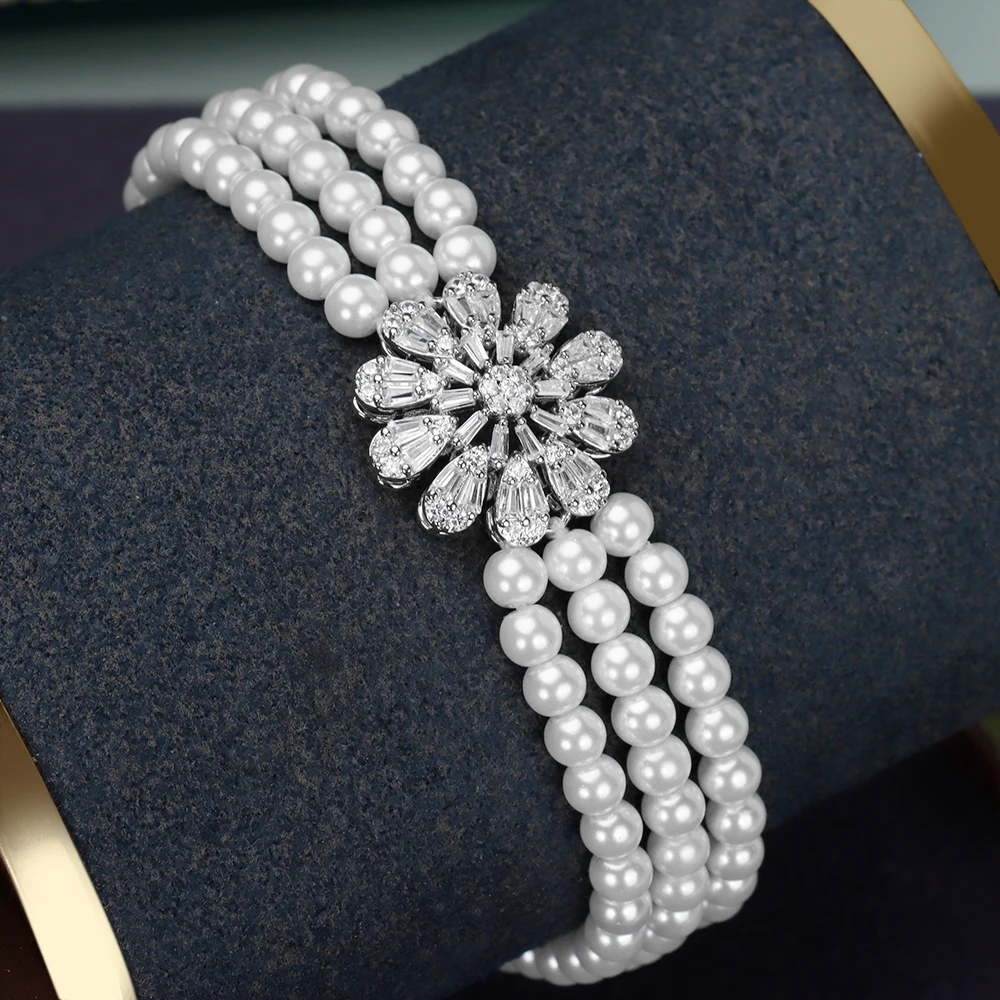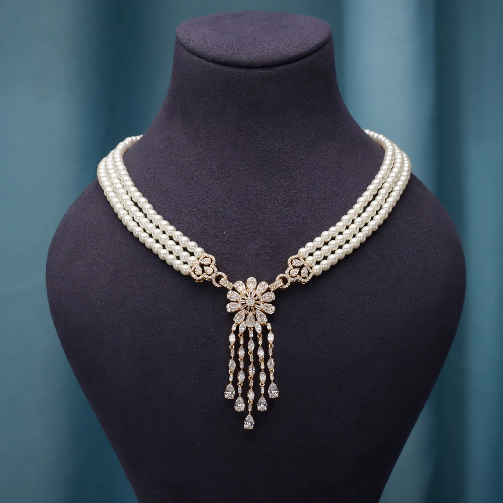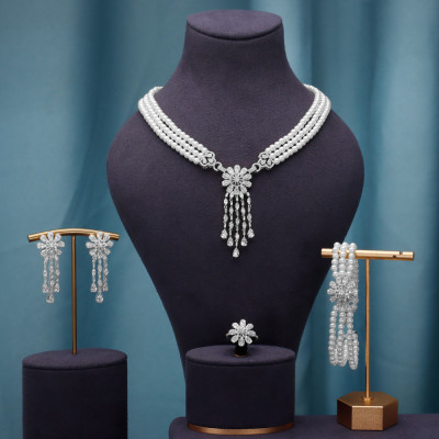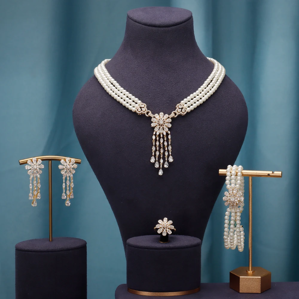 طقم إكسسوار مكون من اللؤلؤ الأبيض والزركون عالي الجودة