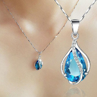 قلادة للنساء أنيقة وعصرية مطعمة بالزركون الأزرق البحري