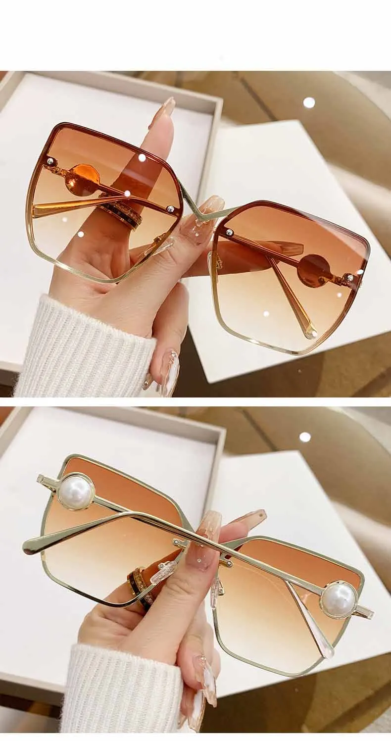 نظارات شمسية بدون إطار مع حماية من أشعة فوق بنفسجية للنساء ، نظارات شمسية ، إطار لؤلؤ قديم ، درجة عالية ، جديد ، واقي شمسي ، حافة مقطوعة ،